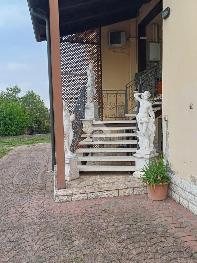 BOVOLONE: Bifamiliare con ingresso indipendente, ampio soggiorno, cucina abitabile corredata di cucina, 3 camere da letto matrimoniali, una camera adibita a cabina armadio, bagno e ripostiglio. Garage doppio e giardino di 400 mq con possibilita' edificatoria. Sottotetto agibile non abitabile al grezzo di 80 mq. Prezzo trattabile.