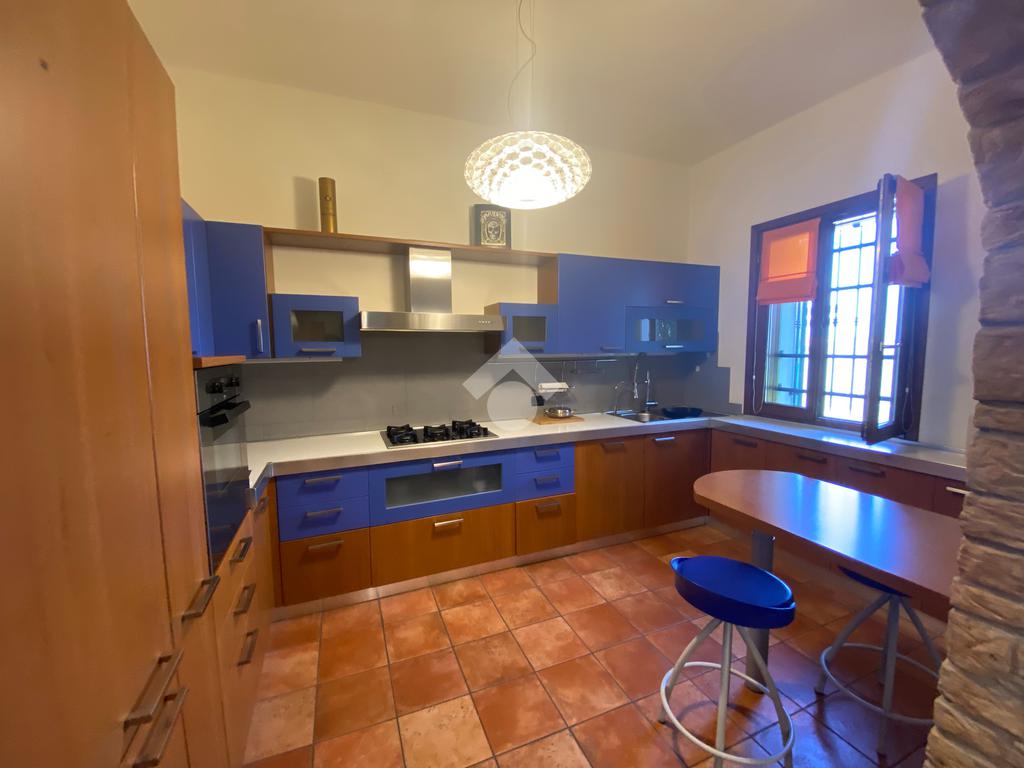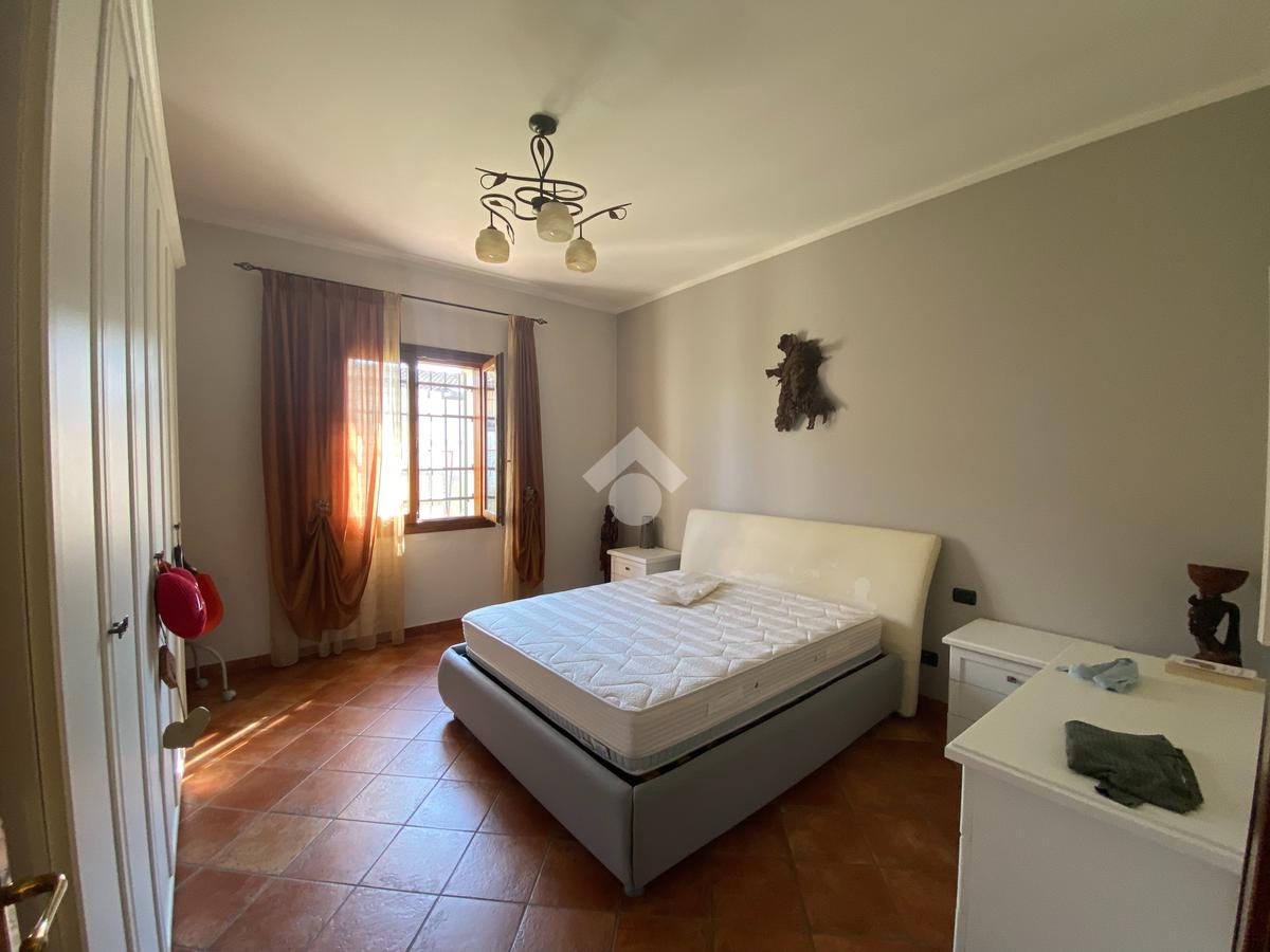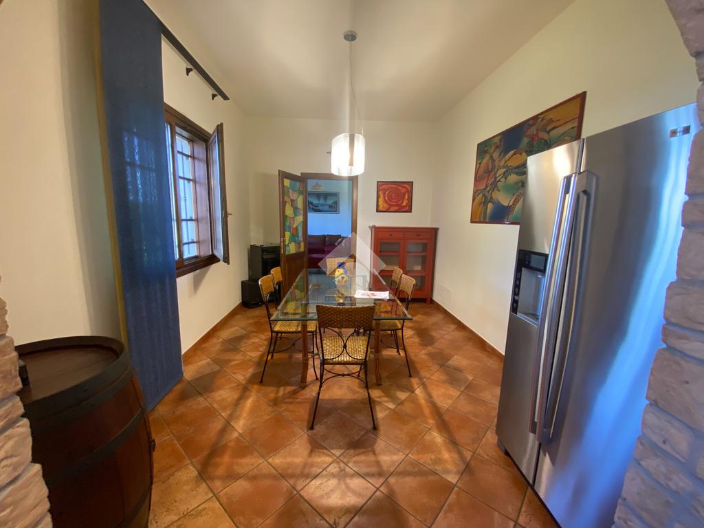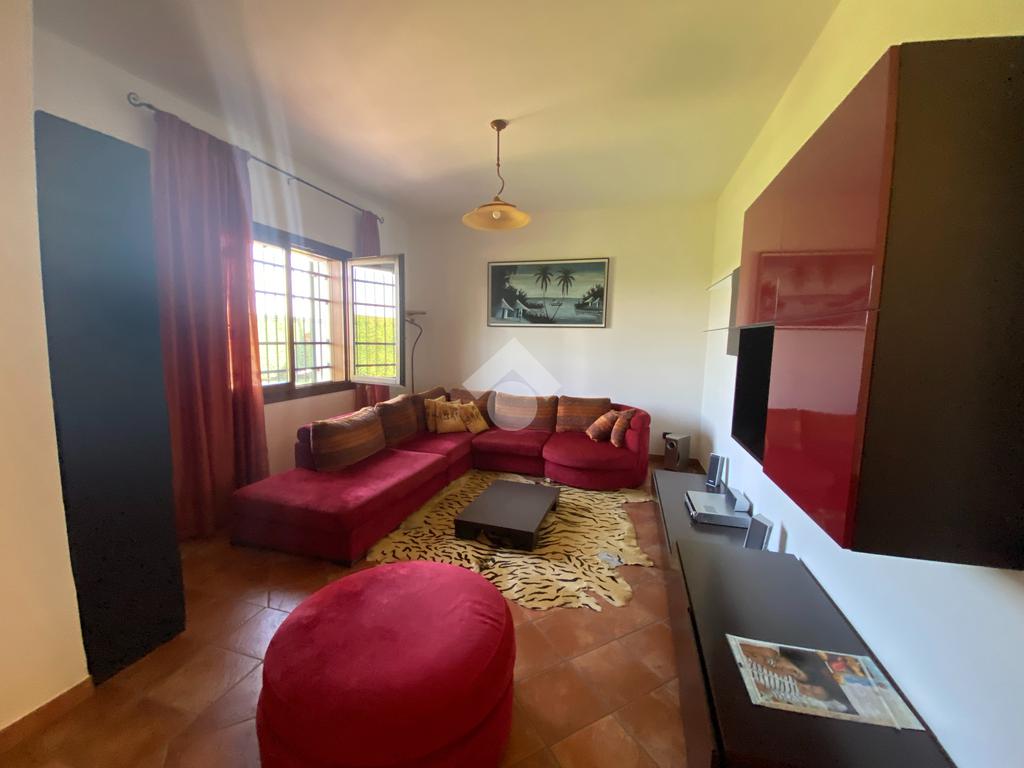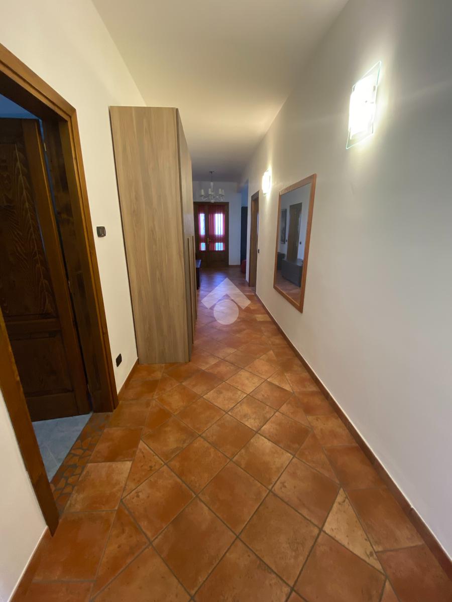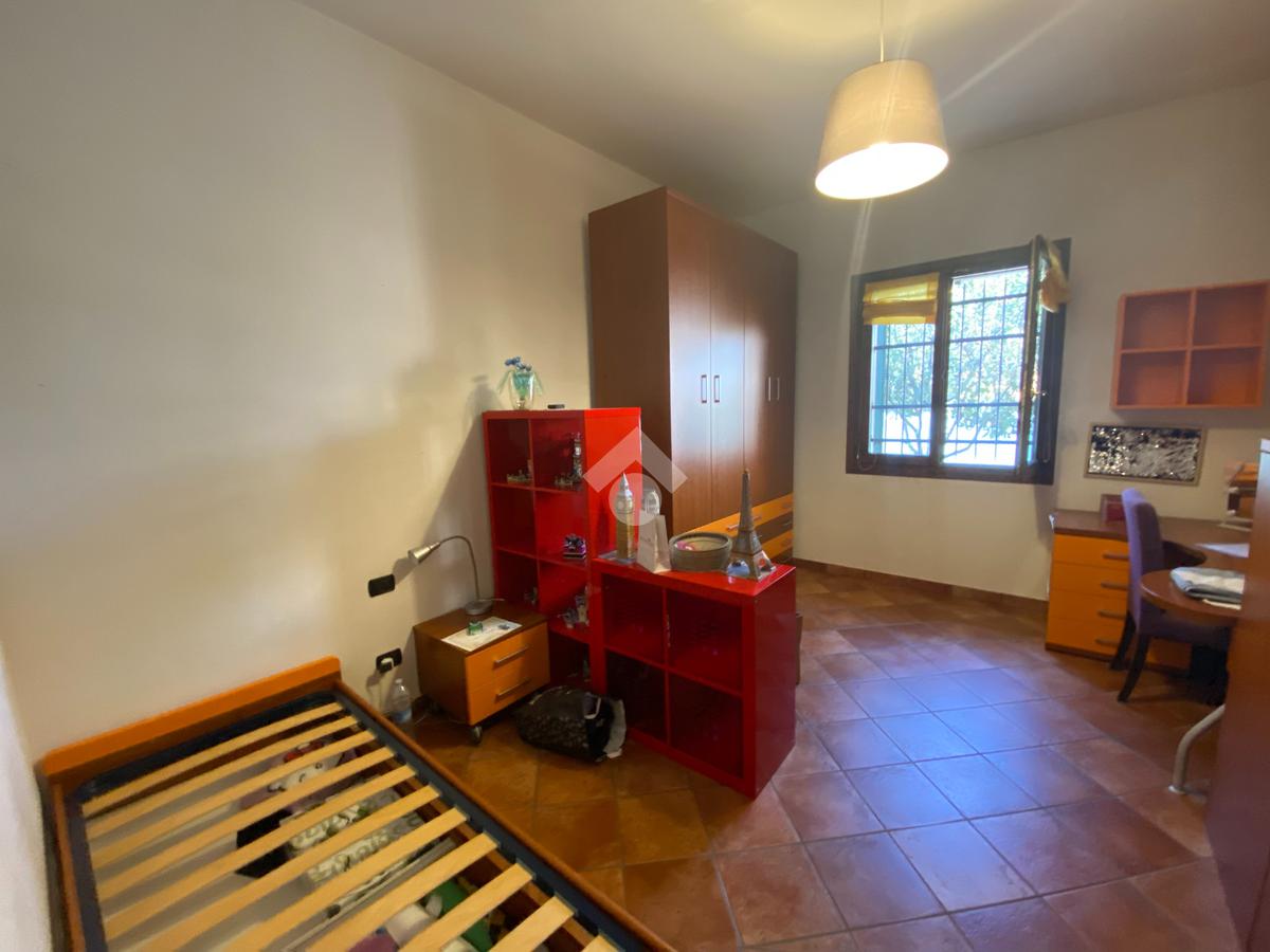 Casa singola su unico livello con ingresso, soggiorno, cucina abitabile, tre camere da letto e due bagni. Garage doppio e splendido giardino. Con riscaldamento a pavimento. Libera da subito e arredata.