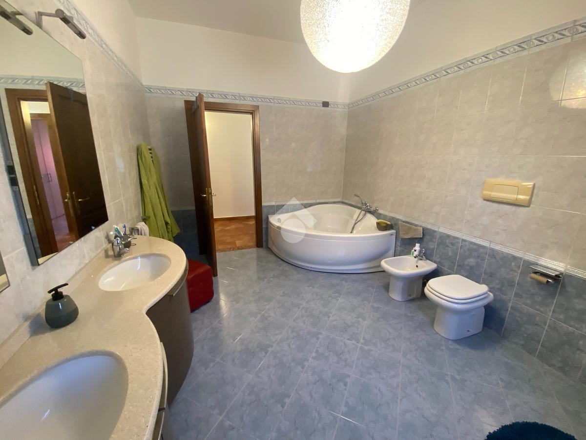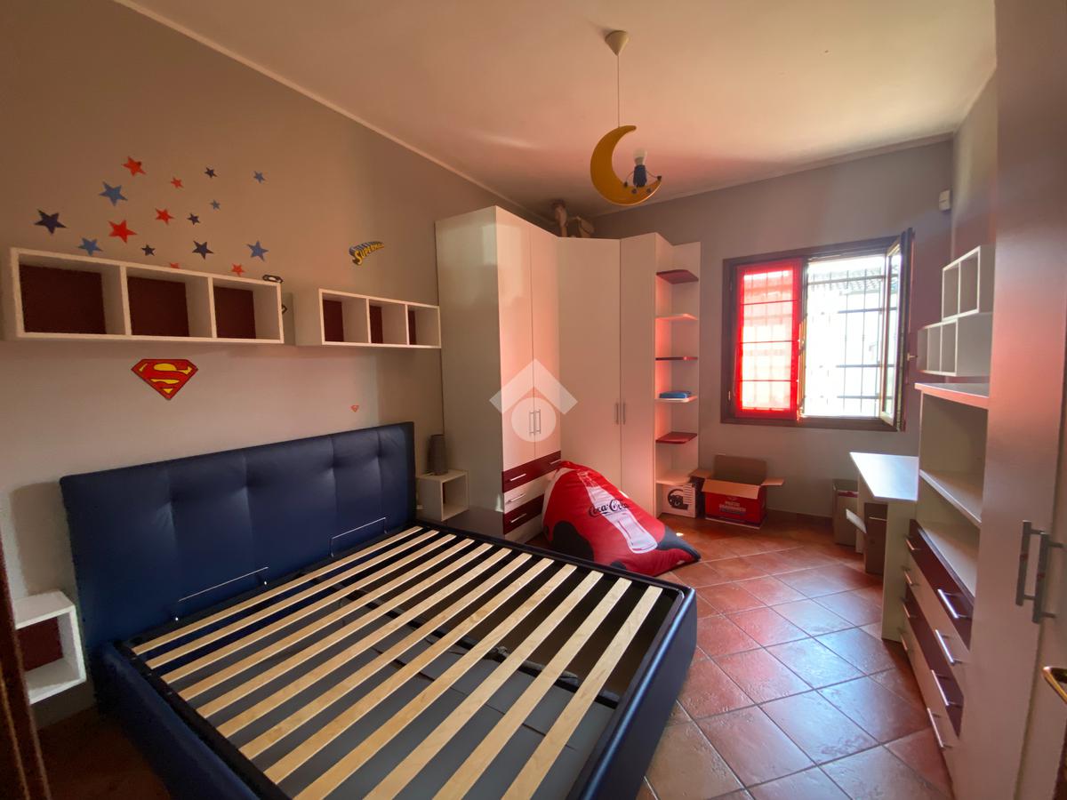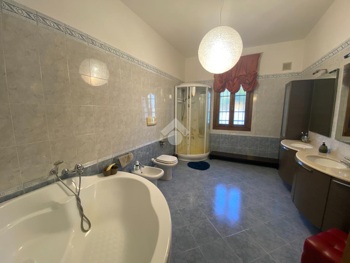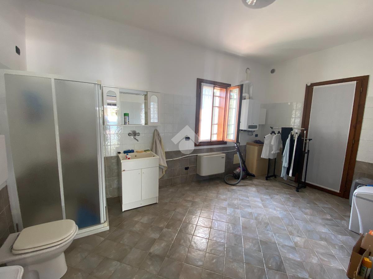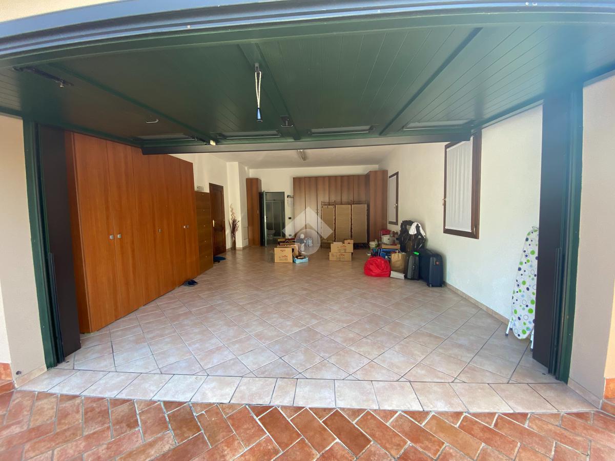 Casa singola su unico livello con ingresso, soggiorno, cucina abitabile, tre camere da letto e due bagni. Garage doppio e splendido giardino. Con riscaldamento a pavimento. Libera da subito e arredata.