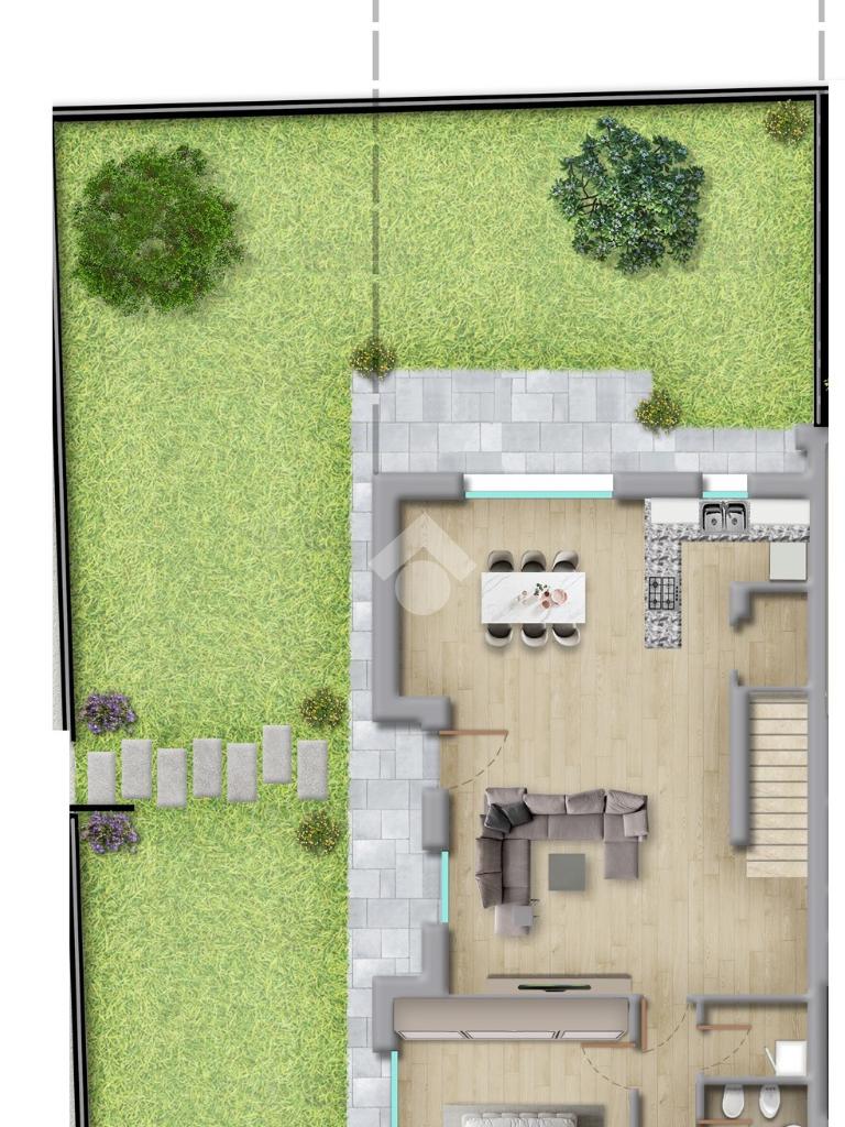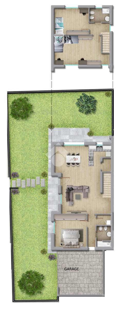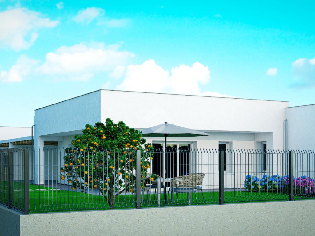 VILLETTA A1 mq 160 di prossima costruzione: SU DUE LIVELLI soggiorno-cucina, camera, bagno e ripostiglio al piano terra, due camere e bagno al piano primo. Garage doppio e giardino. Completamente elettrica.