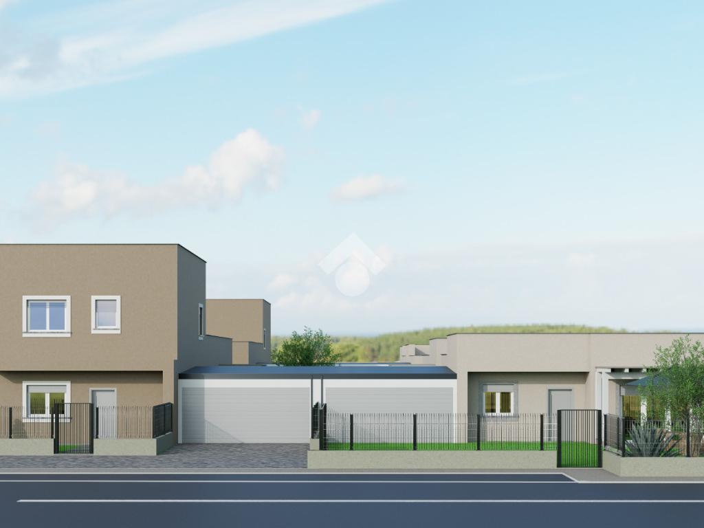 L1. Villetta indipendente su unico livello con soggiorno cucina, 3 camere da letto, 2 bagni, garage doppio e giardino angolare. Nuova costruzione in consegna a fine 2026, possibilità di scelta delle finiture, totalmente elettrica. Classe A
